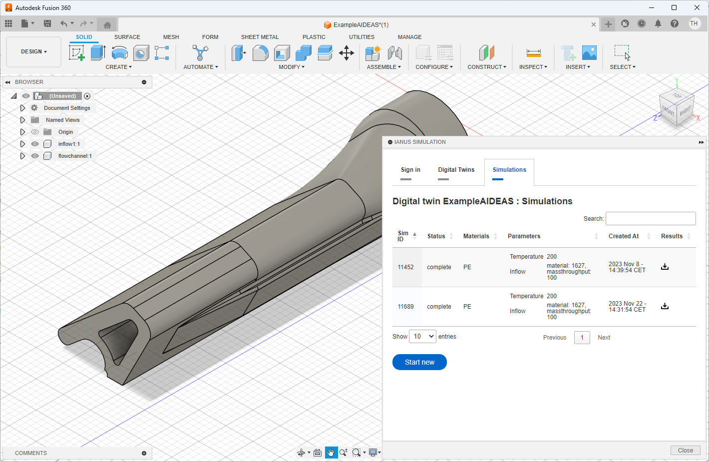 - Simulation Management: Initiate, monitor, and review simulations directly within the Fusion interface. This includes listing all previous simulations, viewing parameters, and tracking the simulation status.