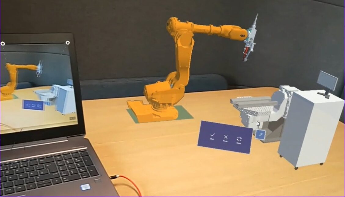 The prior visualisation of the planned system (Pilot Line) as it is often not easy to envision (how the finished system will look in the customer's shopfloor) and whether the space can be used in the best possible way. Support is provided by the use and assistance of augmented reality (AR). Here an overlay of the simulated machine with the real environment can be achieved, helping the user to integrate it as faithfully as possible to the real image in its environment via a Hololens. The Hololens can visualize the Simulation in Augumented Reality to check if the machine can fit into certain areas. Easy applicable to adjustments and re-evaluation of the Pilot Line.